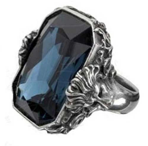 The sparkling splendour of the huge, rich, Montana blue Swarovski crystal is set into a suitably pompous lions’ head frame mount