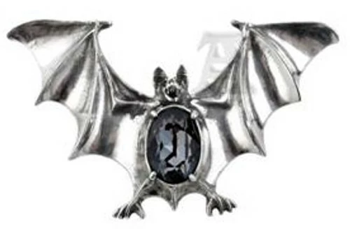 A surviving, authentic 17th Century bat cut-out, now rendered to symbolise the immortal Prince of Wallachia; with large oval Swarovski silvernight faceted crystal & 1¾” brooch pin.