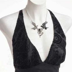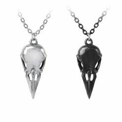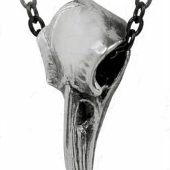 A large, authentically detailed raven’s skull, in antiqued pewter with hand polished beak.
