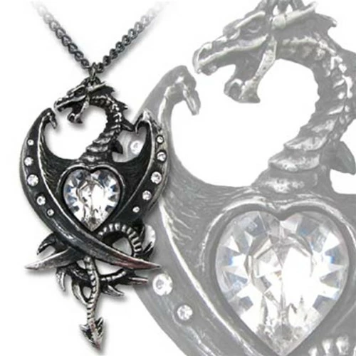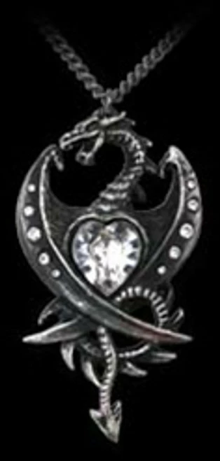 An accursed black dragon, with the heart of a diamond; a metaphor for a dangerous relationship, or else a powerful ally? Set with 11 Swarovski crystals.