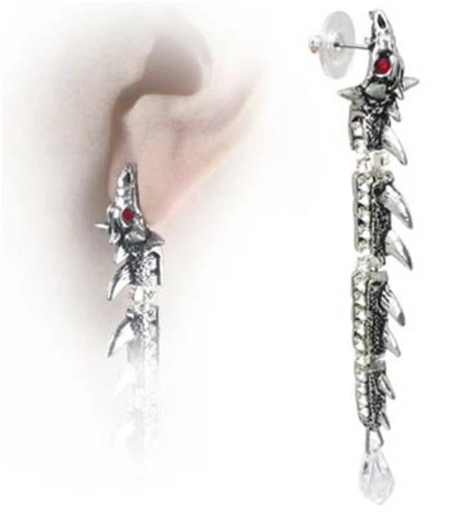 A writhing, spined and crystal-studded ‘reptiles monstre’, fluidly animated and affluently spangled with Swarovski crystals. (single earring)