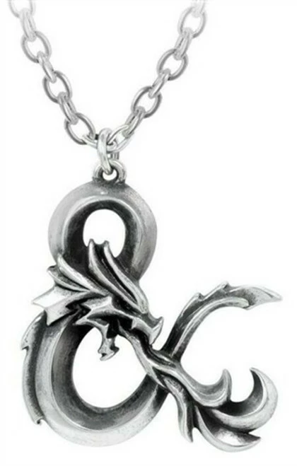 Alchemy Dungeons & Dragons Logo Pendant is a stunning hand crafted dragon ampersand logo necklace of antiqued pewter.