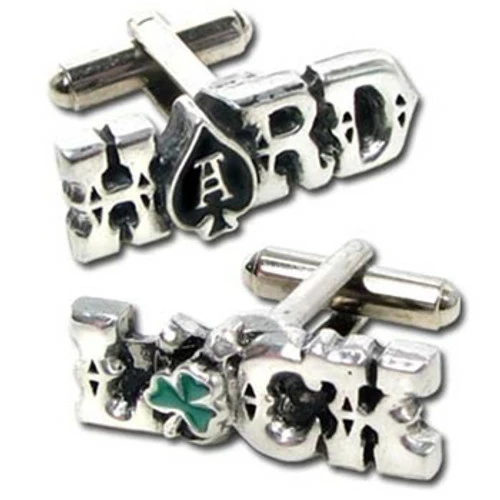 Modelled pewter cufflink set with black enamelled ‘Ace’ & green enamelled ‘shamrock’