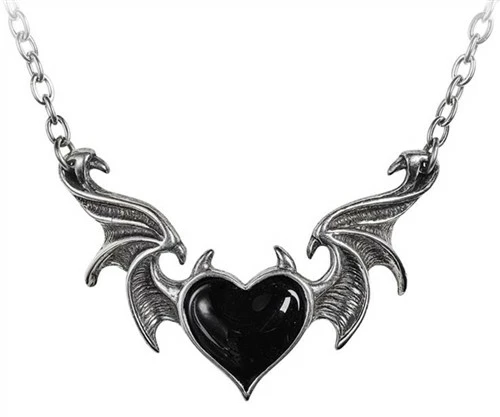 .Blacksoul Necklace by Alchemy is an enamelled black heart with horns, between the outstretched flying wings of a demon.