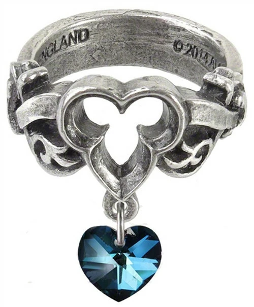 This Alchemy ring is a token of forlorn devotion from the Lady of of the palace in Renaissance Venice; with suspended blue Swarovski crystal heart.