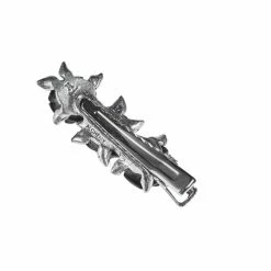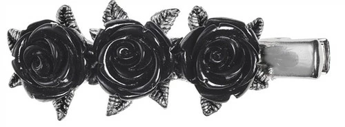 Hair clip fashioned as a row of three pewter roses with black resin blooms, on a 2 cm stainless steel slide clip.