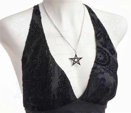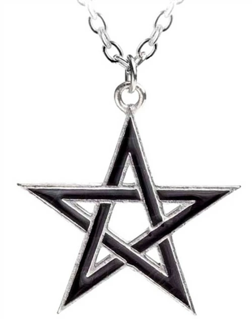 A pewter, black enamelled, medium-sized pentagram pendant.
