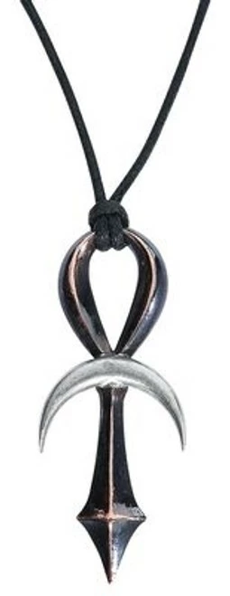 Ankh Pendant by Alchemy is a bronzed pewter gothic ankh pendant, with its horizon bar made in the form of a polished pewter silver crescent moon.