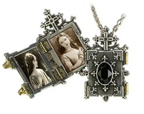 Photo locket in the authentic, classic style of an Eastern Orthodox Church icon, with brass hinges and fasteners. 6 cm long to take two 20 x 30mm size pictures.