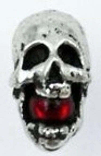 This Alchemy earring is a discreet skull stud with red crystal between jaws.
