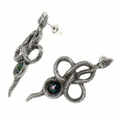 Pewter frame buckle of four intertwined snakes, each with a small black Swarovski crystal in its eye. For fitting onto standard, 1 1/2″ belt straps.