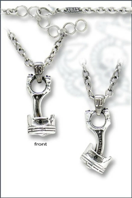 Fully 3-dimensional, articulated ‘broken’ piston pendant. On antique Silver chain