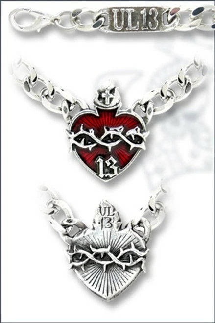 Classical religious symbol of Faith, enamelled in translucent blood-red and encircled by sculpted pewter thorns. On heavy ‘Cuban’ chain.